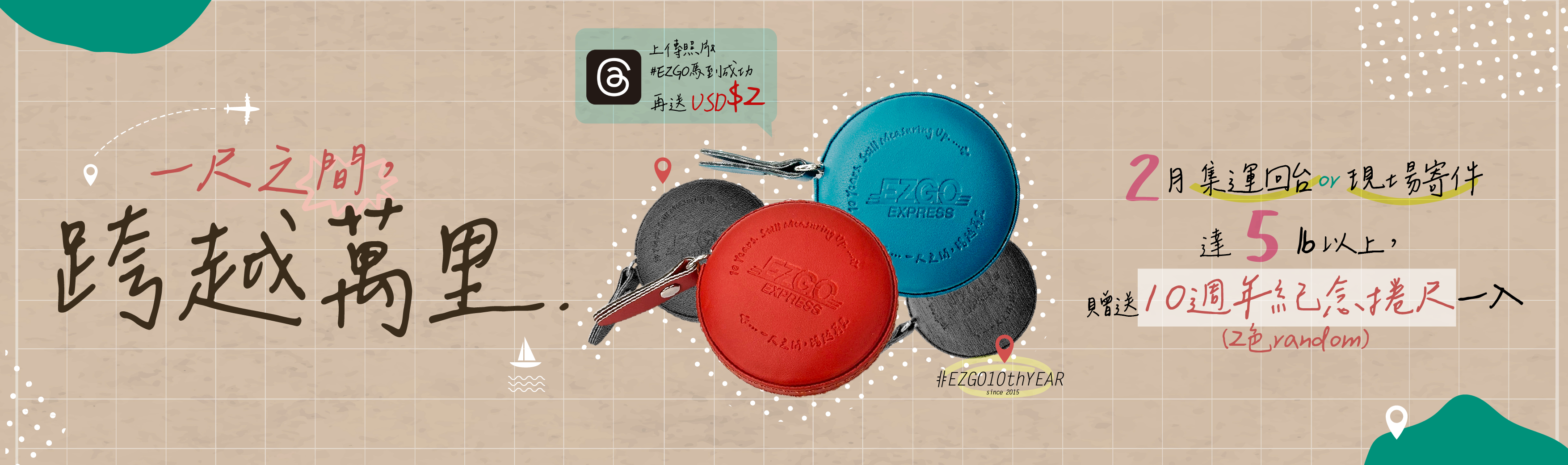 ✦活動加碼!收到拍照上傳並標註「#EZGO馬到成功」再送$2USD,下次寄件折抵使用