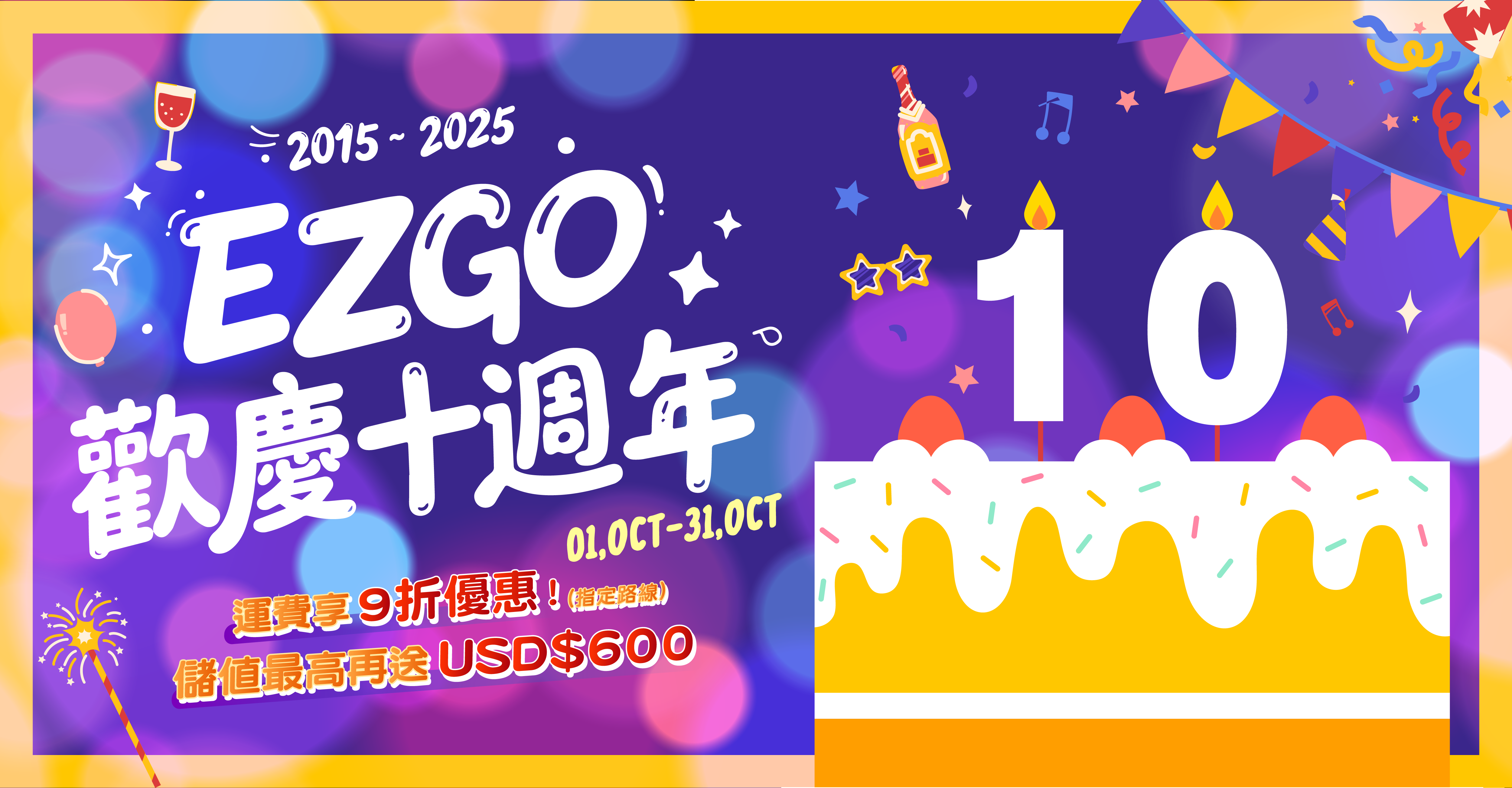 【國際運費優惠】10周年慶!指定線路9折!儲值最高再送$600美金