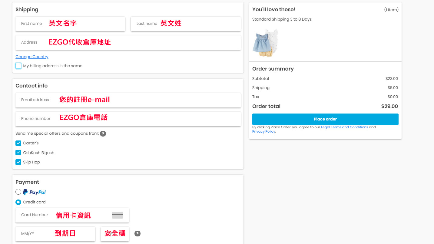 **目前小編測試,Billing Address(帳單地址)使用EZGO倉庫地址