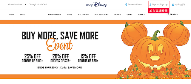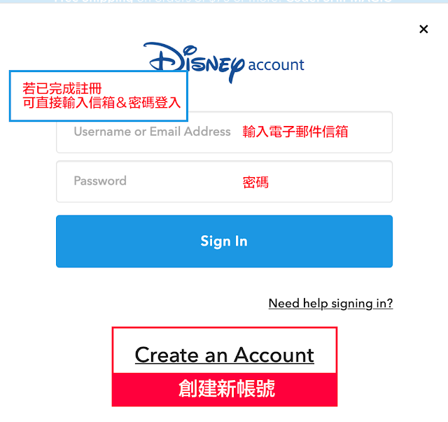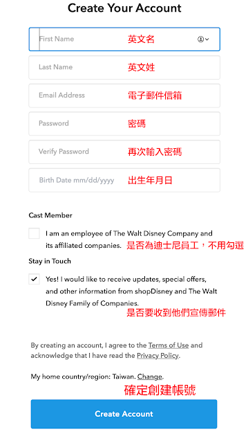 若還沒有加入Disney Shop官網會員,要先做加入創建新帳號