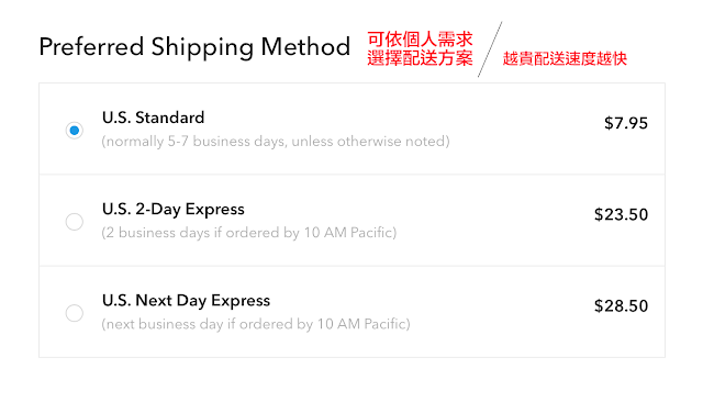通常是越貴配送速度越快,可依您自己個人需求做選擇