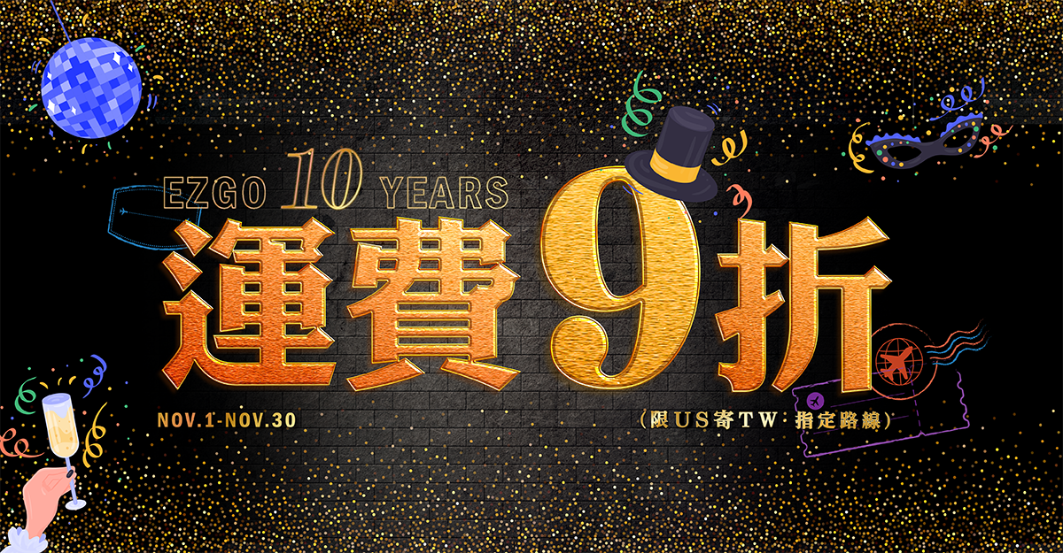 【國際運費優惠】10周年慶!指定線路9折!儲值最高再送$600美金